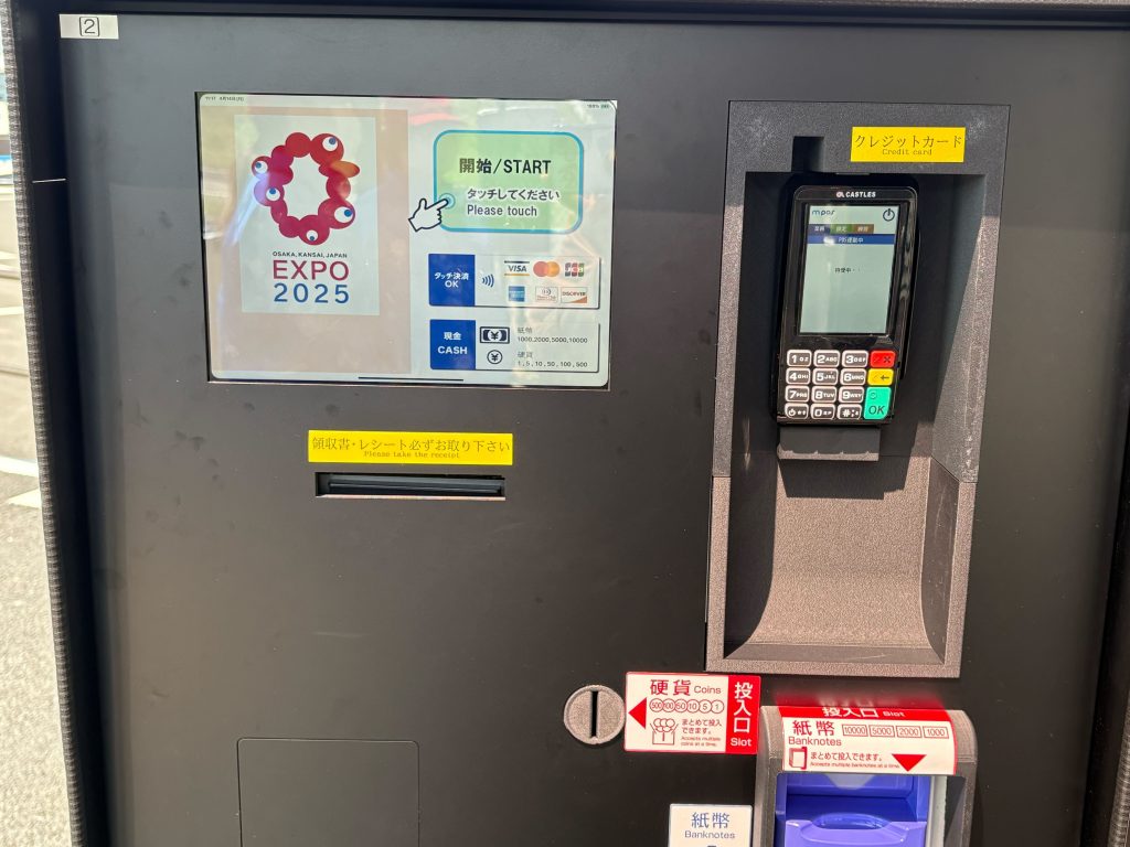 シャトルバス乗り場では交通系ICカードの他、キャッシュレス決済と現金決済のいずれにも対応しており、万博初日の4月13日だけでのべ約1,100人の発券を行っています。会場内は完全キャッシュレスであるものの、交通系ICを持っていない外国人観光客や高齢者の現金へのニーズは高く、実際初日には約45%が現金決済を利用したそうです。